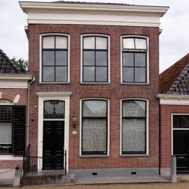 Deftig XIXe eeuws woonhuis met verdieping; de gevel afgesloten door forse kroonlijst; op de verdieping zesruitsvensters, omlijste ingang waarvoor stoep met stoephekje.