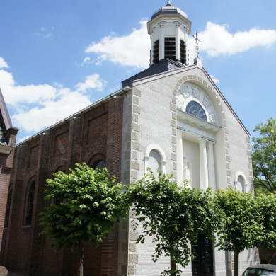 R.K. Kerk van Johannes Nepomuk, zaalkerk in Waterstaatsstijl uit 1838, met gekoepeld torentje, in de voorgevel een boognis met dorische zuilen en kroonlijst, inwendig een tongewelf in stucwerk op een hoofdgestel met jonische zuilen op hoge basementen. Houten altaarretabel (1840) met geschilderd altaarstuk uit 1839 door de Vlaming Jan Baptist van der Hulst, voorstellende de Geboorte van Christus; gesneden eiken communiebank uit omstreeks 1840. Eikenhouten klokkenstoel met klok van Petit en Fritsen, 1838, diam. 50 cm.