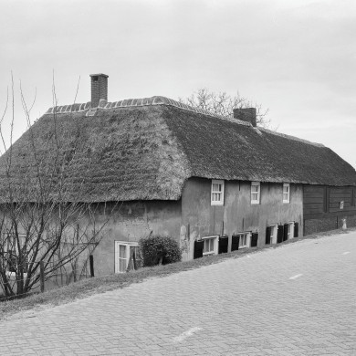 Dijkboerderijtje uit de eerste helft 19e eeuw onder met riet gedekt zadeldak met wolfeinden. Witgeverfde voorgevel waarin vensters met luiken en 12-ruitsschuiframen. Geveltop aan de achterzijde onder het wolfeind met gepotdekselde houten delen.