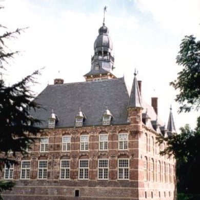 Omgracht kasteel, gebouwd tussen 1609 en 1625 in renaissancevormen, waarbij aanzienlijke muurfragmenten van een voorgaand laat-middeleeuws slot worden gebruikt.