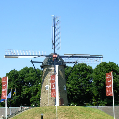KORENMOLEN, ronde gemetselde beltmolen uit 1887, afkomstig uit Zieuwent en na branden herbouwd in 1890 en 1944.