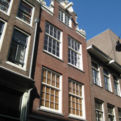 Huis, vanwege de (incomplete ?) zandstenen onderdelen van de gevelhals (2e kwart 18e eeuw).