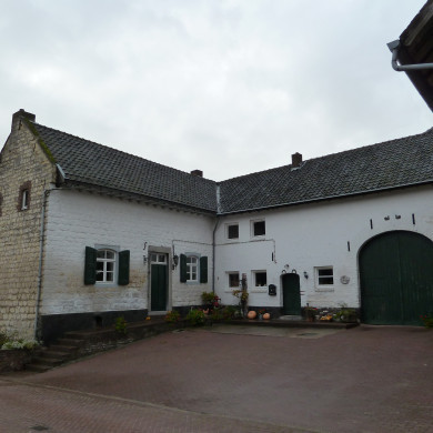 Hoeve met binnenplaats; van mergel, baksteen en vakwerk.