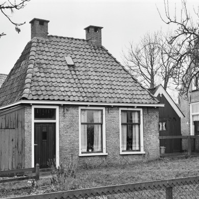 Eenvoudig pand onder zadeldak, voorgevel met rechts een voordeur met bovenlicht.