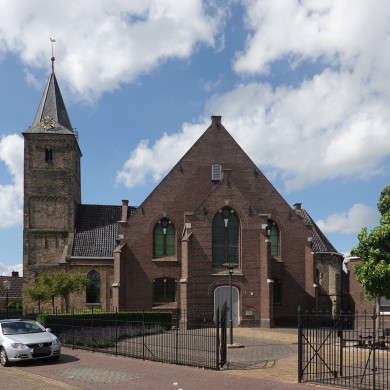 Ned. Herv. Kerk. Het westelijk, tegen de toren (apart monumentnummer 39907), aansluitende deel wordt gevormd door het overgebleven muurwerk van een eenbeukige, romaanse, tufstenen kerk en heeft een merkwaardig geprofileerde daklijst. Gotisch tufstenen koor met driezijdige sluiting, in steen overwelfd. Overigens is het gebouw in de 19e en 20e eeuw door het aanbouwen van dwarsarmen op minder gelukkige wijze aanzienlijk vergroot. Inventaris: eiken preekstoel (1630), orgelkas XVIII, twee eiken banken en een tafel (1647), drie koperen kronen, twee XVIId en een gedateerd (1791). Orgel met Hoofdwerk en Bovenwerk, in 1716 gemaakt door M. Verhofstad voor de Lutherse Kerk in Utrecht.