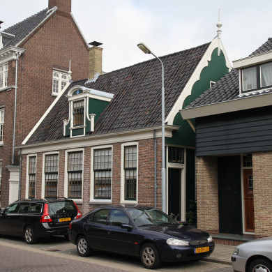 Gebouw van twee evenwijdige vleugels, XIXa, waarvan de zadeldaken aan de straatzijde worden afgesloten door twee gekoppelde ingezwenkte voorschotten met fronton en zijmeanders boven bakstenen puien. De rechtergevel ligt t.o.v. de linker gevel een venstertravee terug.