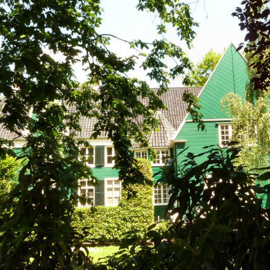 Houten herenhuis met verdieping en schilddak, XIXa. Geprofileerde vensteromlijstingen met sluitstukjes. In het midden dubbele deuren en snijraam in een pilasteromlijsting met gesneden fries. Dakkapel met ingezwenkte zijkanten, een fronton, een rond venster.