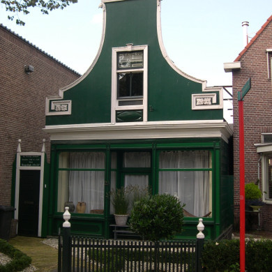 Bakstenen huis met verdieping en schilddak, gebouwd in 1708, gewijzigd 1765 en 1830. Gesneden deur en snijraam in Lodewijk XVI-stijl in een omlijsting met verdiepte pilasters - waarin zijlichten - en Ionische kapitelen. In voorgevel vier van elders afkomstige gevelstenen.