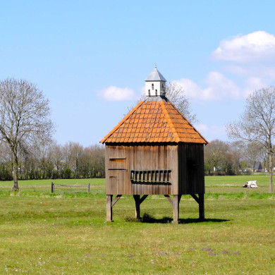 BUITENPLAATS DEN OLDENHOF. Buitenplaats, gelegen ten zuidoosten van Vollenhove. Het huis met ruim voorplein dateert uit het begin van de 17e eeuw en is op het einde van de 18e eeuw gewijzigd. Het is gelegen op een omgracht terrein. De plaats wordt gekarakteriseerd door de aanwezigheid van een voor het huis gelegen moestuin, een terzijde gelegen wandelbos (Engels bosje), door lanen, bosgedeelten, hakhoutpercelen en houtwallen, een in oorsprong 18e-eeuws toegangshek, door een boerderij gelegen buiten de gracht rond het huis en door in een weiland staande duivenslag. Den Oldenhof behoort tot de groep van havezathen, die eertijds om Vollenhove gelegen waren. Het huis kan gerekend worden tot de groep herenhuizen met een enkel of dubbel zadeldak tussen topgevels, zoals die in grote delen van het land in de 16e en 17e eeuw voorkwam. Aanvankelijk was het een sober huis, waarvan op het eind van de 18e eeuw door Johan Arend de Vos van Steenwijk de topgevels zijn afgeknot en dat toen door gedeeltelijke bepleistering een typisch 18e-eeuws karakter kreeg. De symmetrie, die aan de gevels werd gegeven werd aan de achterzijde benadrukt door de uitbouw van de zaal. Typologisch vertoont het huis verwantschap met het Huis Den Berg te Dalfsen, dat wel beschouwd wordt als het ideaaltype van een vroeg 18e-eeuwse kleine Overijsselse buitenplaats. De aanleg rond het huis is sedert ca. 1800 niet meer veranderd. De formele structuur zal van voor 1800 of vroeger dateren. In de 19e eeuw heeft een zekere verlandschappelijking van de aanleg plaatsgevonden. De historische buitenplaats Den Oldenhof heeft de volgende samenstellende onderdelen:1. HOOFDGEBOUW (Havezathe Den Oldenhof), zie voor omschrijving bij complex-onderdeel met monumentnummer: 401143;2. AANLEG ROND HET HOOFDGEBOUW, zie voor omschrijving bij complex-onderdeel met monumentnummer: 401144;3. NATUURSTENEN PIEDESTALS, zie voor omschrijving bij complex-onderdeel met monumentnummer: 401145; 4. TOEGANGSBRUG, zie voor omschrijving bij complex-onderdeel met monumentnummer: 401146;5. SCHUUR, zie voor omschrijving bij complex-onderdeel met monumentnummer: 401147;6. HOENDERHOK, zie voor omschrijving bij complex-onderdeel met monumentnummer: 401148;7. BOERDERIJ (Oppen Swolle 5), zie voor omschrijving bij complex-onderdeel met monumentnummer: 401149;8. BAKHUISJE, zie voor omschrijving bij complex-onderdeel met monumentnummer: 401151;9. HOUTEN KAPSCHUUR, zie voor omschrijving bij complex-onderdeel met monumentnummer: 401152;10. TOEGANGSHEK, zie voor omschrijving bij complex-onderdeel met monumentnummer: 401153;11. DUIVENSLAG, zie voor omschrijving bij complex-onderdeel met monumentnummer: 401154;Den Oldenhof is een goed voorbeeld van een in oorsprong 17e-eeuwse Overijsselse havezathe. Het complex van de historische buitenplaats Den Oldenhof is in cultuurhistorisch opzicht van algemeen belang vanwege: - de vrijwel vanaf rond 1800 of eerder daterende formele structuur van de aanleg rond het hoofdgebouw, die niet veranderd is; - de in beperkte mate eenvoudige verlandschappelijking van bepaalde gedeelten van de aanleg, waardoor deze buitenplaats aan de smaak van de tijd werd aangepast; - vanwege de voor een historische buitenplaats specifieke elementen als waterpartijen, lanenstelsel, bossen, graslanden en bouwland, hakhouten percelen, bijbehorende boerderij en de houten duivenslag; - de architectuur van het hoofdgebouw, die aansluit bij de voor Overijssel kenmerkende architectuur van de 18e-eeuwse buitenhuizen;