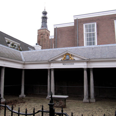 In 1766 door C. van Leeuwen gebouwde vishal, bestaande uit drie vleugels rond een binnenpleintje, dat door een ijzeren hek van de straat gescheiden wordt. De drie vleugels worden gedekt door schilddaken en zijn naar het pleintje geopend als galerijen met hardstenen dorische zuiltjes, die een houten hoofdgestel dragen. De middentravee van de terugliggende vleugel draagt een houten fronton met het stadswapen en het jaartal 1776. In de naar de straat gekeerde eindgevels gesneden deuren.