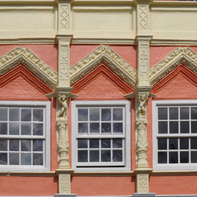 Pand uit de vroege 17e eeuw met twee verdiepingen en zadeldak, dat aan de voorzijde is afgewolfd en aan de achterzijde aansluit tegen een tot puntgevel gewijzigde trapgevel met ontlastingsbogen boven de vensters, welke laatste negenruitsramen bezitten.
