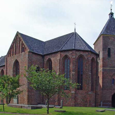 Hervormde Kerk en vrijstaande toren op ruim kerkhof toegankelijk door hek tussen hardstenen palen. Grote eenbeukige kruiskerk uit de veertiende eeuw, inwendig geheel overwelfd; tegen de westgevel een schoolgebouwtje onder een dakschild. Aan de zuidwestzijde forse klokkentoren gedekt door tentdak. In de kerk rijk gesneden preekstoel met klankbord en kapstokbord, 1646. Avondmaalstafel 1773. Twee blokken banken met 17e eeuws tympaan. Orgelkas en rugwerkkas, alsmede enig pijpwerk dateren van 1651, gemaakt door Th. Faber. Elf wapenborden. 14 Zerken en hoofdsteentje. Klokkenstoel met gelui van drie klokken, waarvan een van G. van Wou, 1502, diam. 148,2 cm. en twee moderne klokken. Mechanisch torenuurwerk Van Bergen, Midwolda, 1939.
