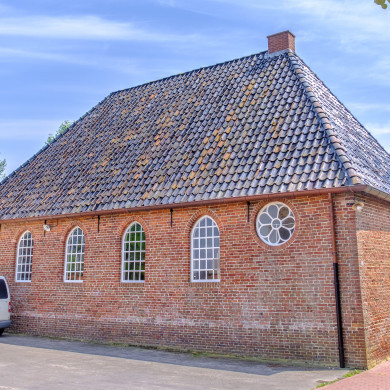 Doopsgezinde Vermaning. Sober schuurkerkje onder hoog schilddak; halfrond gesloten vensters met roedenverdeling. Bouwjaar 1772. Inwendig preekstoel en orgel.