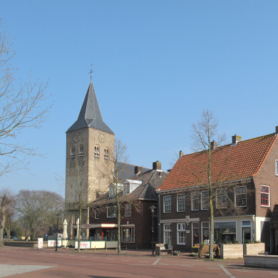 Herv. kerk. Laatgotische pseudobasiliek (XV B) met 3/8 gesloten koor (midden XV) en westtoren, van oorsprong romaans (XVII B), herbouwd na een instorting in 1662. Bij opgravingen, welke tijdens de herstelling van zware oorlogsschade (1949-'50) werden gedaan, vond men de grondslagen terug van een romaanse basiliek met drie absiden (XI). In het koor een sacramentshuisje (XV) tegen de noordwand. Preekstoel (XVIIb).