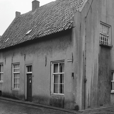 Dwarshuisje (XVII A) op de hoek van de Wittenburgerstraat. Zadeldak tussen puntgevels met vlechtingen. In de gepleisterde voorgevel jaartalankers: 17.. . In de vensters roedenverdeling XVIII en XIX A. Mooi pannen dak. Achter het woonhuis deel onder hoog pannen dak.