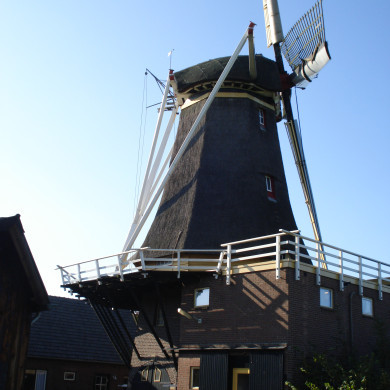 Molen "de Hoop". Uit 1845 daterende, achtzijdige houten bovenkruier met stelling. Gerestaureerd ca. 1962.