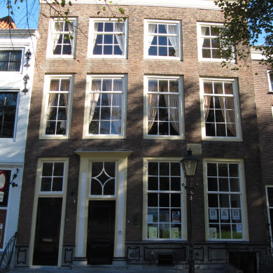 Huis met vier traveeën brede lijstgevel XVIII. In de gevel gevelsteen d.d. 1656. Hardstenen plint met zwartgeverfde ornamenten. Stoep en stoephek.