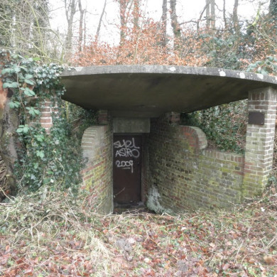 IJSKELDER. In een heuvel tussen het koetshuis en de vijver in landschapsstijl een gaaf bewaarde ijskelder, bestaande uit een met koepelgewelf overdekte ruimte, voorafgegaan door een rechttoelopend voorportaal.