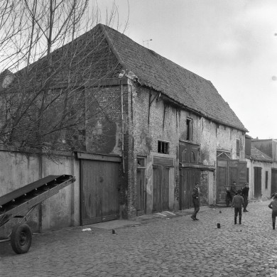 Bakstenen rechthoekige schuur onder pannen schilddak, 18e eeuw.