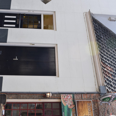 Verdiepingloos pand met langsgevel aan de straat. Stoep.