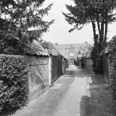 Langs het semi-openbare padenstelsel gesitueerde tuinschuurtjes, al dan niet gekoppeld en afwisselend met de nok haaks en evenwijdig met de weg geprojecteerd, opgetrokken in baksteen met inspringende plint onder zadeldak tussen puntgevels met uitkragende schoorstukken. De ingangen bevinden zich afwisselend in de zijgevel of in de tuingevel, alternerend met een klein rechthoekig venster. Voor het overige zijn de gevels vrijwel blind.