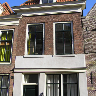 Pand uit begin van de 18e eeuw met bakstenen voor- en achtergevel voorzien van rechte kroonlijsten en geprofileerde natuurstenen dorpels onder de vensters in de voorgevel.