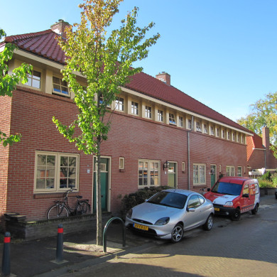 In 1927 naar ontwerp van W.M. Dudok gerealiseerd woningbouwcomplex - het tiende van de gemeente - bestaande uit 48 eengezinswoningen waarvan in oorsprong een winkelhuis, alle opgetrokken in baksteen met kapverdieping onder samenstel van met rode pannen gedekte zadel- en schilddaken van wisselende hoogte en met gevarieerd overstek, en telkens in gevarieerde samenstelling gegroepeerd in rechte rijen langs de straten, waarbij horizontale accenten als vensterstroken - in oorsprong met zes en vierruitsverdeling op de begane grond, respectievelijk kapverdieping - en gootlijsten worden afgewisseld door verticale elementen als hoog opgemetselde schoorstenen en voorts door gedeeltelijke toepassing van staand beschot. Woningreeks van kenmerkende architectuur voor de vierde fase in de oeuvre-ontwikkeling van Dudok wegens de gematigd-gevarieerde opbouw van de woningrijen met enkele karakteristieke accenten en afwisselende kapvormen en als zodanig van belang uit architectuurhistorisch oogpunt.