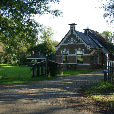KLEINE BOERDERIJ MET SCHUUR ten oosten van het hoofdgebouw, 'de Boskplaets' genaamd, van het kop-hals-romp-type, uit de 19e eeuw, met naar het noorden gerichte kop met een verdieping, dat evenals de hals van een met blauwe Friese golfpannen gedekt zadeldak is voorzien. In de voor(noord-)gevel van de in de tweede helft van de 19e eeuw herbouwde kop twee rechthoekige vensterkozijnen. De uit de eerste helft van de 19e eeuw daterende romp is overkapt met een rieten wolfdak, waarvan het oostelijke dakschild tot een lessenaarsdak is doorgetrokken. De onderste regels van de dakschilden zijn met blauwe Friese golfpannen gedekt. Aan de wolfeinden van het dak uileborden, bekroond door een gevelmakelaar, waarin het motief van twee gestileerde zwanekoppen. De boerderij is gelegen aan de lindensingel ten oosten van het hoofdgebouw.