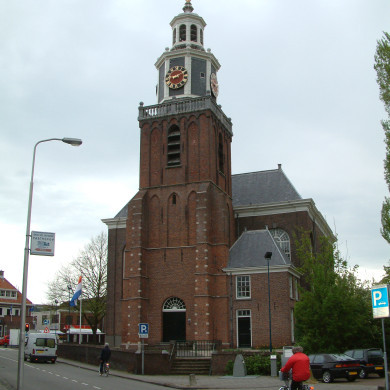 NED. HERV. KERK. Monumentaal gebouw op vierkante plattegrond met rechthoekige uitbouw aan de oostzijde, gebouwd door Giudici, 1785-'87. Stucgewelven op vier pijlers. Tegen de zuidgevel portaal met hardstenen zuilen, hoofdgestel en siervazen. Toren met gedeeltelijke 15e eeuwse onderbouw, waarop sierlijke achtkantige houten bekroning van Giudici (?). Waardevol interieur; kansel, doophek en drie herenbanken in stijl Lod. XVI; twee grote en vijf kleine kaarsenkronen (XVII). Kerk en toren gerestaureerd 195.? Orgel met Hoofdwerk en Bovenwerk, in 1839 door N.A.Lohman en Zonen gebouwd. In 1971 uitgebreid met een vrij Pedaal. NED. HERV. KERK. Monumentaal gebouw op vierkante plattegrond met rechthoekige uitbouw aan de oostzijde, gebouwd door Giudici, 1785-'87. Stucgewelven op vier pijlers. Tegen de zuidgevel portaal met hardstenen zuilen, hoofdgestel en siervazen. Toren met gedeeltelijke 15e eeuwse onderbouw, waarop sierlijke achtkantige houten bekroning van Giudici (?). Waardevol interieur; kansel, doophek en drie herenbanken in stijl Lod. XVI; twee grote en vijf kleine kaarsenkronen (XVII). Kerk en toren gerestaureerd 195.? Orgel met Hoofdwerk en Bovenwerk, in 1839 door N.A.Lohman en Zonen gebouwd. In 1971 uitgebreid met een vrij Pedaal. Klokkenstoel met gelui bestaande uit een klok van A. Steylaert, 1571, diam. 103,7 cm en een moderne klok. Mechanisch smeedijzeren torenuurwerk, gesigneerd Willem Hermannus Brouckman, 1634.