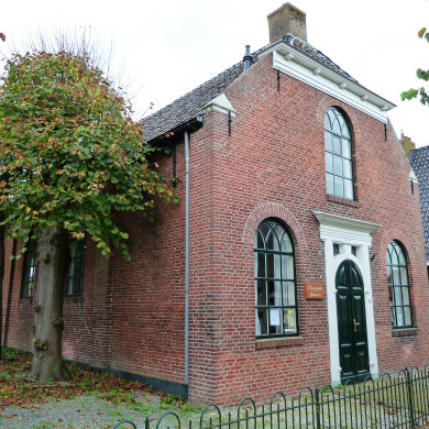 Acht traveeën breed pand met verdieping onder schilddak met hoekschoorstenen. Het gebouw is in gebruik als "herberg" waartoe de beganegrond als doorrit over drie traveeen open is en steunt op standvinken. Op de verdieping zesruitsvensters.