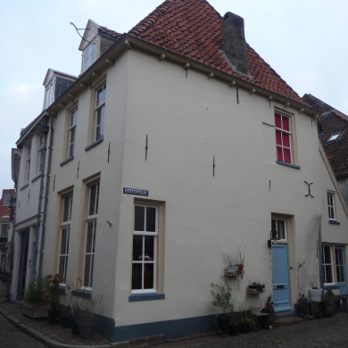Pand, in oorsprong XV (?), vernieuwd XVIII met puntgevel met vlechtingen XVIII.