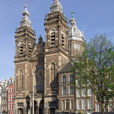 Parochiekerk van de H. Nicolaas. Gebouwd 1885-1887 door A.C. Bleys. Driebeukig kruisbasiliek in neorenaissance stijl met aan weerszijden van de voorgevel twee torens met barokke helmen en op de kruising een achthoekige toren met koepel, bekroond door een lantaarn. Inwendig pijlers met arcaden, hoge pilasters met Corintische kapitelen en tongewelven met cassetten over de hoofdbeuken. Meubilair in renaissancevormen: altaren en preekstoel van E. van den Bossche, muurschilderingen van Jan Dunselman. Orgel met Hoofdwerk, Positief, Recit en Pedaal, in 1889 gemaakt door W. Sauer. Naast de kerk de eveneens door Bleys gebouwde pastorie met o.a. opmerkelijke zaal in neorenaissancetrant.