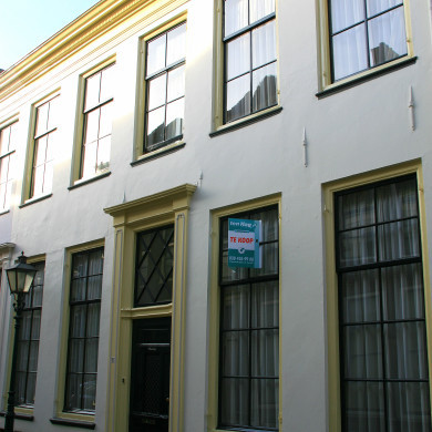 Pand met gepleisterde gevel en rechte lijst. Voordeur en bovenlicht in pilasteromlijsting plm 1800.