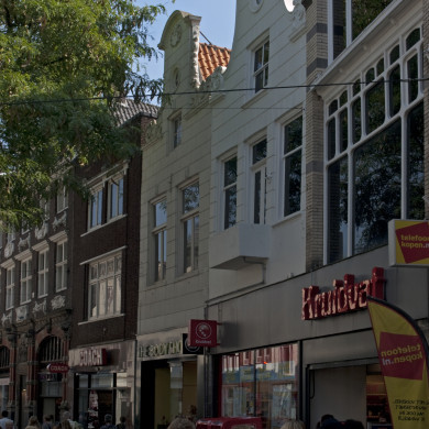 Inleiding WINKEL met Renaissancistische BOVENWONING uit 1666 met Neo-Renaissancistische winkelpui uit ca. 1880-1890. In de kroonlijst van de onderpui is de naam van het pand "De Witte Leeuw" in reliëf aangebracht. Tot 1873 was er een likeurstokerij of bierbrouwerij gevestigd in het pand.