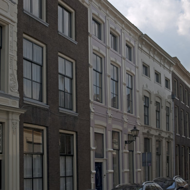 Pand met brede gevel met kroonlijst op consoles. Middenpartij in Lod. XIV omlijsting. XVIIIa.