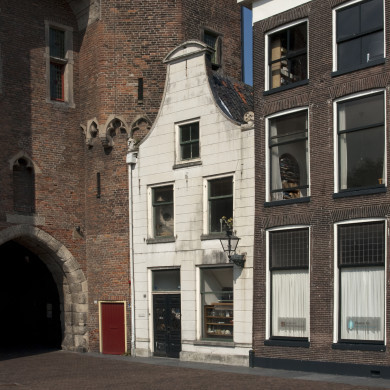 Sassenpoort. Vermoedelijk dagtekenend uit 1409. Aan de landzijde twee hoektorens, die van rond in achtzijdig overgaan; ertussen in een mezekooi met werpgaten. Aan de stadszijde veelhoekige hangtorentjes. De kantelen en het middentorentje dateren van de restauratie van 1893-'98.