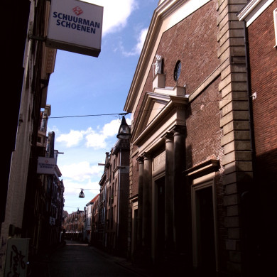 V.m. R.K.Kerk op de hoek van de Nieuwstraat en de Rozemarijnstraat. Gebouw met neoclassicistische gevel, gebouwd in 1848 door Theo Molkenboer. Na voltooiing van de neogotische St. Michaelskerk in 1892 diende de v.m. kerk aan de Nieuwstraat als gebouw van de R.K.Werkliedenvereniging St. Joseph, welke functie het tot 1926 behield, waarna het een bestemming als opslagruimte verkreeg. In baksteen uitgevoerde voorgevel met als pleisterbossage behandelde hoekkettingen. De hoofdingang heeft een omlijsting van gekoppelde Toscaanse zuilen van natuursteen, die een hoofdgestel met houten fronton dragen, bekroond door een heiligenbeeld. Links en rechts zijportalen in eenvoudige, rechthoekige omlijstingen. De vrijstaande gevel aan de Rozemarijnstraat is sober behandeld en heeft in de verdieping grote rondboogvensters. De driezijdig gesloten lagere apsis aan de Bitterstraat is in neoromaanse trant gedetailleerd en wellicht een latere toevoeging. Klokkenstoel met gelui van drie klokken, waarvan een van Petit en Fritsen, 19de eeuw, diam. 91,8 cm., een van Mabilon (Th. Hogen), 1933, diam. 41,3 cm. en een van een anonieme gieter, zonder jaartal, diam. 28,9 cm. Mechanisch torenuurwerk Th. Hogen, Amsterdam.