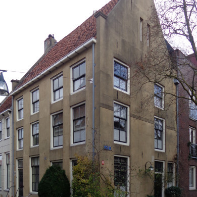 Pand met gepleisterde gevel onder een dak met het nr. 36. XVII ?.
