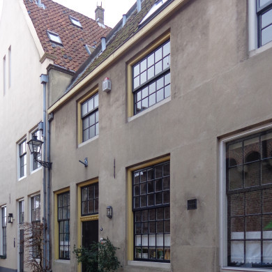 Pand met gepleisterde gevel onder een dak met het nr. 36. XVII ?.