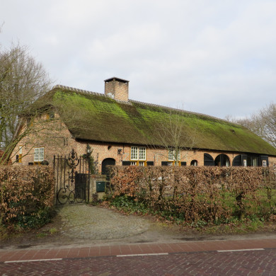Boerderij van het Kemische langgeveltype, onder rieten wolfdak met voet van pannen; kruiskozijnen met luiken. Jaarstenen 1778.