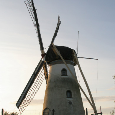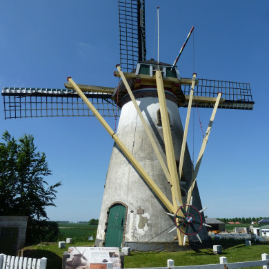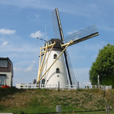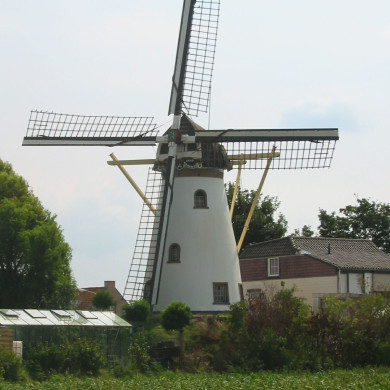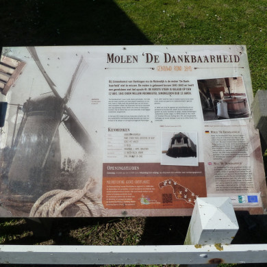 Korenmolen "De Dankbaarheid". Witgepleisterde molen met ronde, gemetselde romp, blijkens een gevelsteen uit 1841. Gerestaureerd.