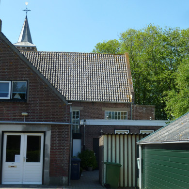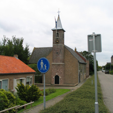 Ned. Herv. Kerk. Eenvoudig, rechthoekig zaalkerkje uit 1788 met rondboogvensters, een hardstenen deuromlijsting met op de sluitsteen Lodewijk XIV-ornament en een torentje met achtzijdige spits. Tot de inventaris behoren: een preekstoel met lezenaar, kandelaar en zandloperhouder, een voorzangerslezenaar met kandelaar, twee koperen kroontjes, drie kandelaars op gesneden leeuwtje, twee kandelaars op een bank, twee tekstborden en twee psalmbordjes, alles uit de bouwtijd. Klokkenstoel met klok van G. Bakker, 1788, diam. 60 cm.