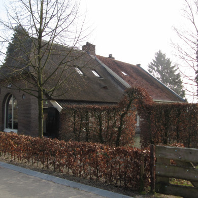 Het "Bouwhuis". Goede BOERDERIJ, in 1637 gekocht door de Heren van Middachten en in 1734 ingericht tot pastorie. Puntgevel met vlechtingen en vensters met schuiframen. Stal met rieten wolfdak. Ligging ten zuid-westen van de Herv. Kerk belangrijk.