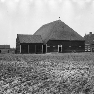 "Groot Middenhof" Boerderij. Losstaand woonhuis met pannen dak. Gootlijst met fries. Dakkapel met sieromlijsting. Schuifvensters met paneelluiken. Rollagen boven deur en ramen en platte laag met rollaag onder ramen. Bakhuis annex zomerhuis. Mooie hardstenen poortpalen, XVII-XVIII.
