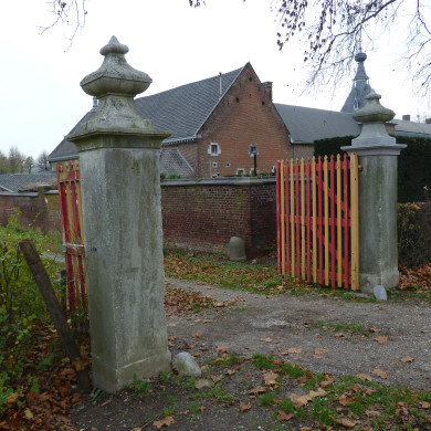 Twee hardstenen in Lodewijk XVI-stijl uitgevoerde pijlers met geprofileerde sokkel en afdekplaat, bekroond door een geprofileerd vaasvormig ornamentstuk, uit de laatste kwart van de 18e eeuw. De pijlers, die identiek zijn aan de aan de oostzijde van de Graaf de Geloeslaan ten zuiden van de hoofdas gesitueerde pijlers, zijn eveneens aan de Graaf de Geloeslaan geplaatst en flankeren de aan de zuidzijde van het bouwhuis gelegen oprit.