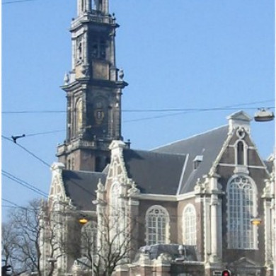 Westerkerk (1620-1631 ontwerp H. de Keyser). Driebeukige basiliek op rechthoekige plattegrond met twee transepten. Inventaris zie V.L. Westerkerktoren (1620 beg. ontwerp H. de Keyser, in gewijzigde vorm voltooid 1638). Zeer hoge toren bestaande uit in hoogte in omvang afnemende vierkante verdiepingen en een bekroning in de vorm van een keizerskroon. Klokkenspel bestaande uit 14 klokken van François Hemony, gegoten in 1658, en 36 moderne klokken. Automatisch trommelspeelwerk uit 1650, met trommel van Hemony. Op de zolder ? buiten gebruik gestelde klokken. Klokkenstoel met gelui bestaande uit een klok van C. Fremy, 1686, diam. 180 cm, en twee klokken van François Hemony, 1658, diam. resp. 130 en 120 cm.