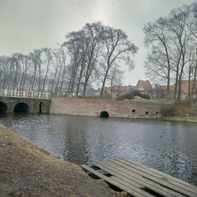 COURTINE III-IV MET MHEENPOORT, BRUG, KAZEMAT EN MUURRESTEN. Courtine met: - Nabij het midden van de wal, de voormalige Mheenpoort, thans een coupure tussen twee keermuren met schotbalksponningen. - Voor de poort over de gracht, een gemetselde boogbrug met én overspanning. - Aan de stadszijde, gedeeltelijk onder de brug en gedeeltelijk onder de coupure, een halfcirkelvormige gemetselde kazemat (ca. 1540) met aan de NW-zijde twee schietgaten. De kazemat is toegankelijk via een gemetselde trap en is voorzien van een tot boven de gronddekking opgemetselde ventilatie-schacht. Aan de ZO-zijde van de coupure, een restant van een ronde toren, toegankelijk via een gemetselde trap. - Aan de stadszijde van de Mheenpoort, resten van de middeleeuwse ommuring, te weten een rondeel in de as van de Smeesteeg en ca. 7 m. hoge muur tussen dat rondeel en de Mheenpoortstraat. Voorts op ca. 12 m. ten zuidoosten van die straat een ca. 7 m. hoge muur tot aan een rondeel in de as van de Schapesteeg, hoog ca. 12 m.; vandaar tot aan de ZO-grens van perceel C1673 fragmenten van een muur en een rondeel, beide tot oorspronkelijke hoogte aangevuld. - Voorliggende gracht ter breedte van ca. 20 m. nabij de Mheenpoort en oplopend tot ca. 30 m. nabij de bastions III en IV. Betrokken kadastrale percelen, Elburg nrs.: - C1482 ged. (hiervan slechts een strook ter breedte van ca. 1,50 m., gerekend van de grens met de percelen C622, C1671, C1394, C814 en C815); - C1484 ged. (hiervan slechts het deel tussen de percelen 1445-1481, 539-1106 en Oostwal-Noordwal); - C1488 ged. (hiervan slechts een strook ter breedte van ca. 1,50 m., gerekend van de grens met percelen C1673, C1674, C1648, C150 en C149); - C537, C539, C1106, C1108, C1445 ged., C1481 ged., C ongenummerd ged. (Noordwal) en C ongenummerd ged. (Oostwal).