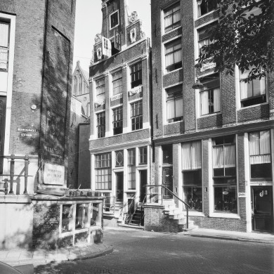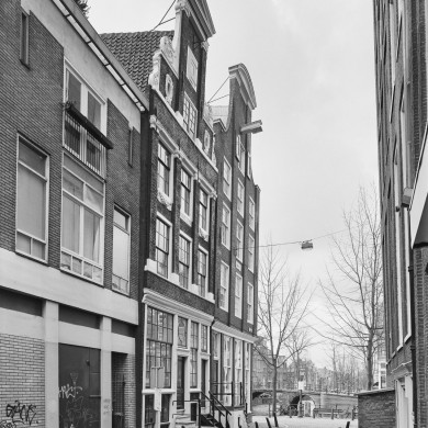 Hoekhuis (1649) op de oude rooilijn van de Herengracht. Voorgevel met lisenen, waarvan de top XIXa door een rechte lijst is vervangen. Pui met bovenhuisdeur (XVIII). Jaartalsteen. Zijgevel overgebouwd op balkkoppen; pothuis.