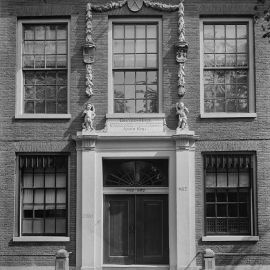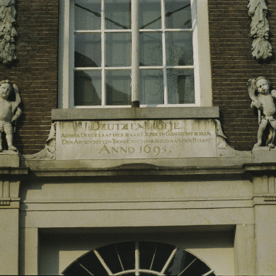 Dubbel huis (1695), behorend bij het complex van het Deutzenhofje. Gevel met hoekliseen, 2 dakkapellen en deuromlijsting.