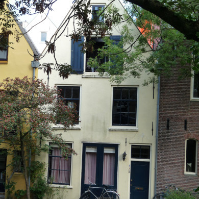Klein 18e eeuws aan de werf gelegen achterhuis van Twijnstraat 45, bestaande uit een laag met kap.